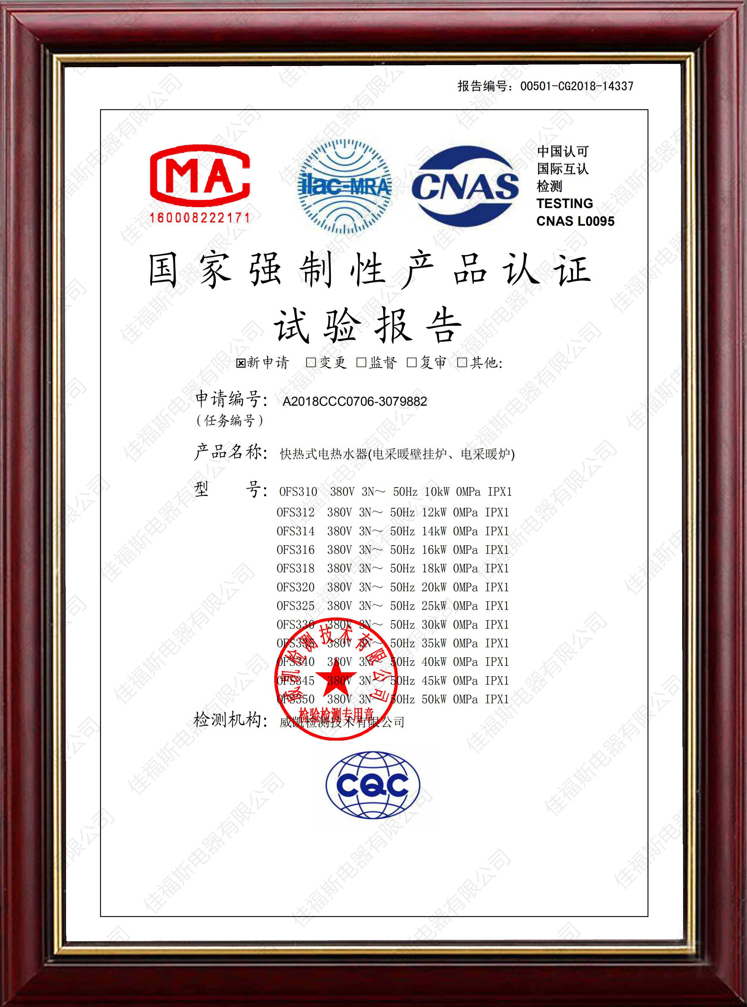 佳福斯以創(chuàng)新科技為目標(biāo),本公司投入巨資, 耗時(shí)多年,終于達(dá)到 了改寫(xiě)電加熱技術(shù)的新篇章,它的安全性和耐用性是現(xiàn)在全世界同類(lèi) 產(chǎn)品無(wú)可比擬的,佳福斯擁有大規(guī)模的生產(chǎn)工廠,專(zhuān)業(yè)生產(chǎn)電加熱的 核心部件加熱體, OEM貼牌以及品牌機(jī), 它通過(guò)強(qiáng)制性認(rèn)證, 結(jié)構(gòu)獲得專(zhuān)利, 通過(guò)電加熱技術(shù)的改寫(xiě)以及新思路,佳福斯將引 領(lǐng)供暖供熱水設(shè)備進(jìn)入新潮流,為人類(lèi)共享快樂(lè),真正帶給人們溫暖。